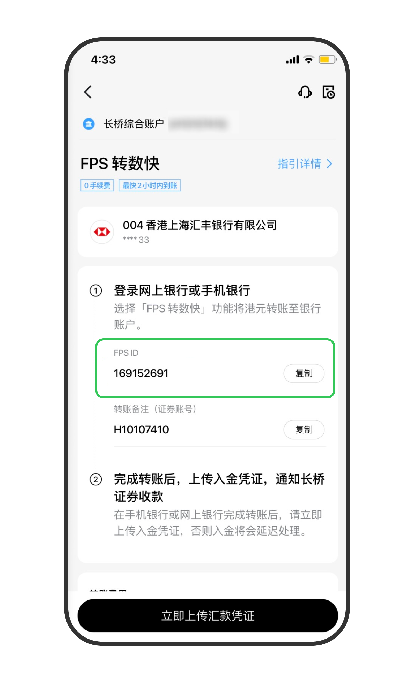 步骤 1.打开 长桥 App > 存入资金 > FPS 转数快,直接复制 FPS ID。
