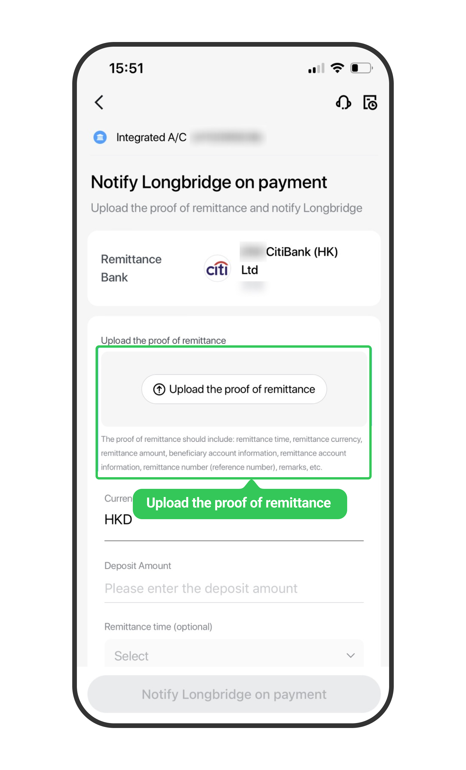 Note: To ensure timely processing, please save a screenshot (or take a photo) of the proof of remittance and upload it via the Longbridge App.