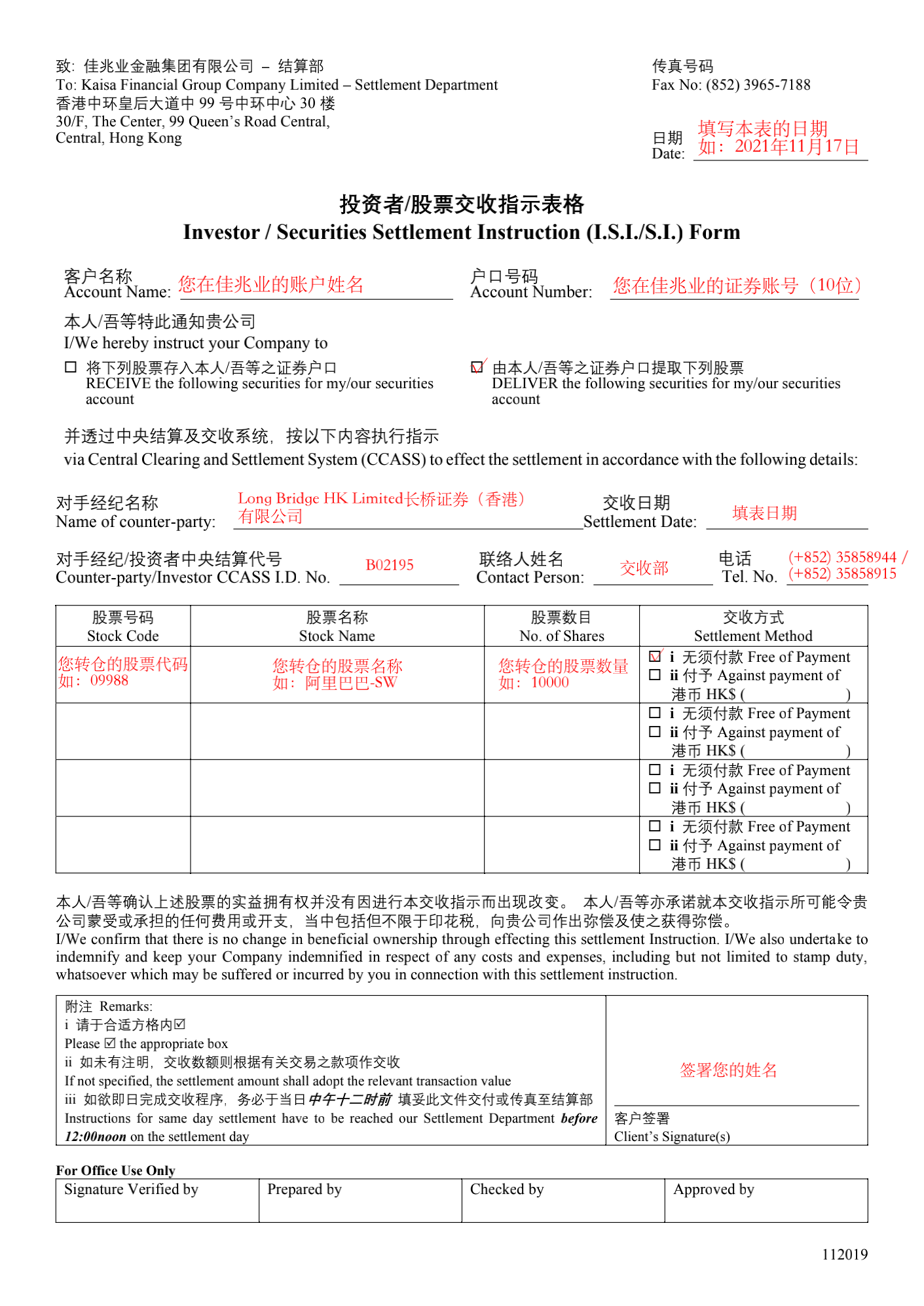 Kaisa customer service will contact you by phone within 1–3 working days after you send the email (please be prepared to answer calls from Hong Kong) to verify your identity and confirm your intention to transfer.