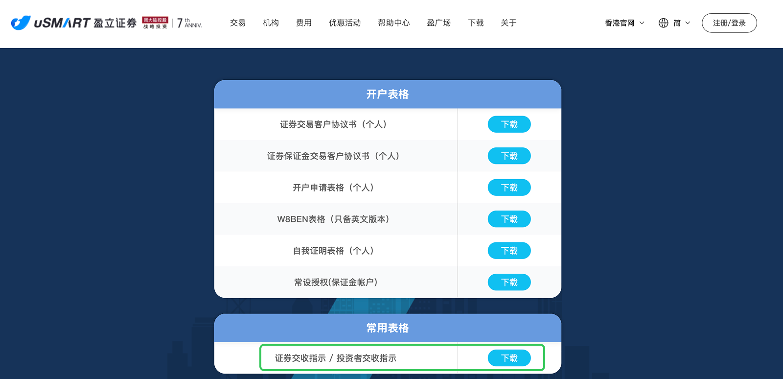 路径:进入盈立证券官网 https://usmart8.com/mainland > 帮助中心 > 下载表格- 下载证券交收指示。
